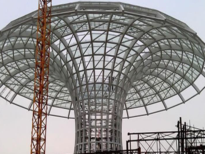 二、球形网架结构因其结构新颖,受力合理,自重轻、用钢量低等优点。如大型体育场馆球形锦州螺栓球网架、公共场馆球形网架、电厂锦州螺栓球网架、水泥工业球形网架、仓储物流球形网架、锦州干煤棚工业球形网架、锦州收费站锦州加油站球形网架、展览中心、影剧院、商场、航站楼、候车厅、工厂锦州车间、仓库、电视塔等球形螺栓球节点网架。国内球形网架结构主要分为:锦州焊接球节点网架及螺栓球节点网架两种。螺栓球节点网架其构件工厂内加工量较大,现场安装便捷,适用于现场工期紧,锦州施工条件、用电量受制约,网架形状复杂、锦州杆件定位困难的异形结构。螺栓球节点球形网架系统基本由锦州杆件、螺栓球、支撑支座等组成。按照节点形式可分为交叉锦州桁架体系、四角锥体系、三角锥体系等。支撑方式多为固定支座支撑。对于大面积、大跨度及有特殊受力或伸缩要求的网架结构可采用橡胶支座、滑移支座、球铰支座等支撑形式,以满足结构自身的受力稳定、均衡,便于内力释放等设计要求。